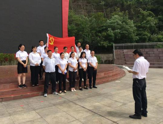 鳳臺酒店黨支部書記、執(zhí)行董事、總經(jīng)理趙劍同志帶領(lǐng)酒店所有黨員及各部室負(fù)責(zé)人來到紅色基地,重溫黨的光輝歷史,牢記黨的初心使命,宣讀入黨誓詞,重憶入黨初心