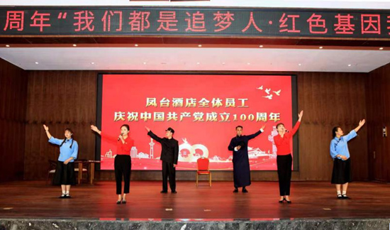 為隆重慶祝中國共產(chǎn)黨建黨成立100周年,6月25日下午,在廣元市交通旅游投資集團(tuán)主辦,各旗下子公司聯(lián)辦的以“我們都是追夢人,紅色基因我傳承”為主題的匯演活動中,廣元鳳臺國際酒店全體員工滿懷赤誠,為黨獻(xiàn)禮!